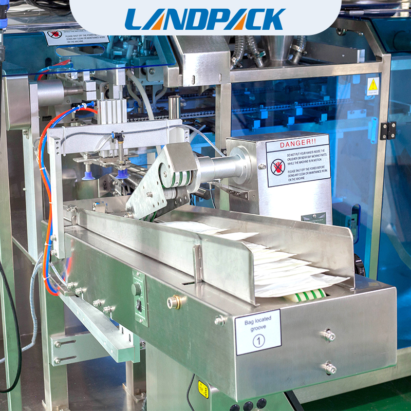 調(diào)味品混合包裝機(jī)它代替了手工包裝,操作人員只要將做好的一個一個的袋子,一次性將幾百個袋子放在設(shè)備的取袋部,設(shè)備機(jī)械手會自動的取袋、打印日期、開袋、給計量裝置信號計量并落料、封口、輸出。