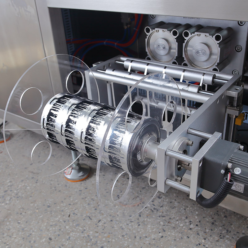 該機(jī)通過卷膜制袋或預(yù)制包裝袋這些環(huán)節(jié)完成制袋、開袋、物料灌裝、封口等功能,包裝產(chǎn)品是特殊異型狀的獨(dú)立袋和扁平袋,體現(xiàn)了包裝產(chǎn)品的差異化設(shè)計(jì)。