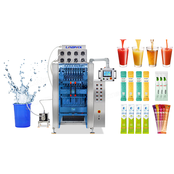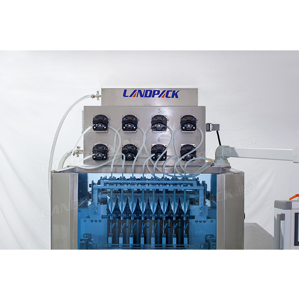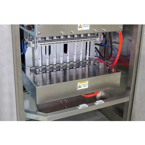 整機采用8頭通道 、卷膜、制袋、封切、封口一體機設備。適用產(chǎn)品主要為液體類,如簌口水、速溶飲料、蜂蜜、果汁、果凍、辣椒油等不同液體狀態(tài)的產(chǎn)品。
