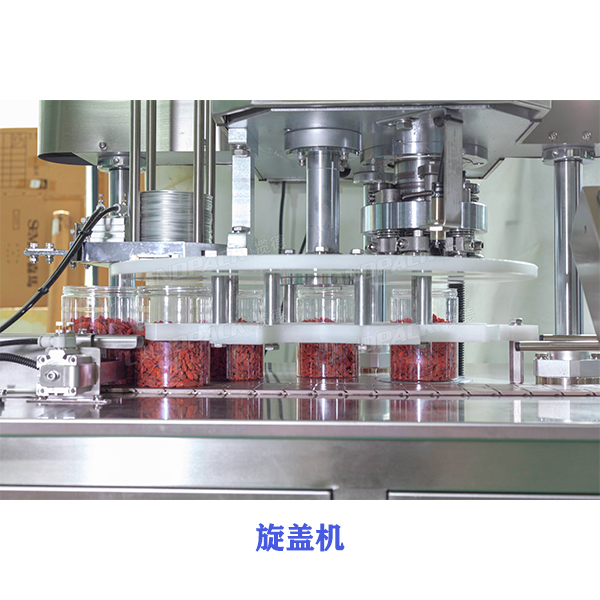 此自動生產(chǎn)線用于罐裝的食品,對罐子進行封罐旋蓋貼標,能夠有效減少與空氣接觸,達到延長保質(zhì)期,如枸杞、堅果、葡萄干、爆米花、開心果等食品。該線由自動理瓶-封罐-上蓋-旋蓋-貼標等工序組成,該線的每臺設(shè)備設(shè)計合理,結(jié)構(gòu)緊湊,占地面積小,工作效率高,運行穩(wěn)定可靠,操作簡單方便。前端可與顆粒灌裝機連線使用,后端可配開箱機,裝箱機,封箱機,打包機連線使用,可形成一條全自動化生產(chǎn)線,節(jié)省人工,自動化程度高。