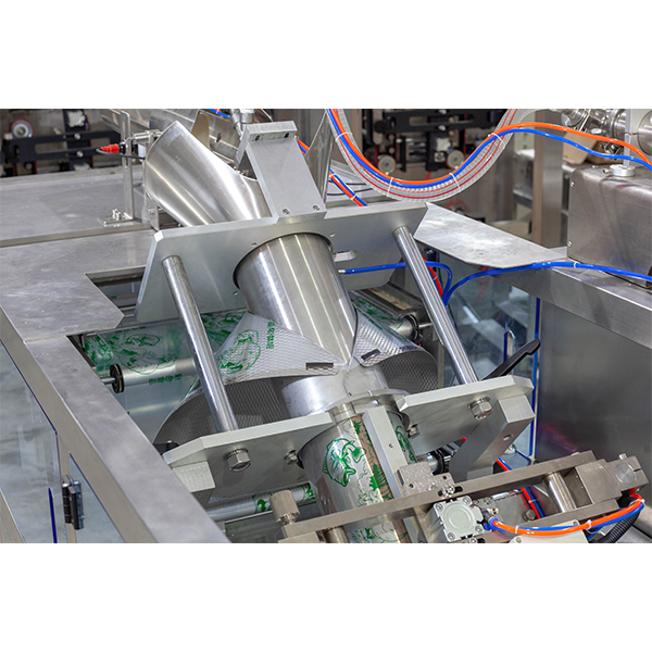因為是打包和充氣包裝活魚之類的生鮮物料,采用傾斜式倒料機構,可以有效防止袋子封口裂開,還可以防止活魚在下料過程產(chǎn)生撞擊,保證了存活率。