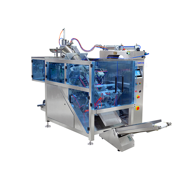 因為是充氣包裝活魚之類的生鮮物料,采用傾斜式倒料機構,可以有效防止袋子封口裂開,還可以防止活魚在下料過程產(chǎn)生撞擊,保證了存活率。